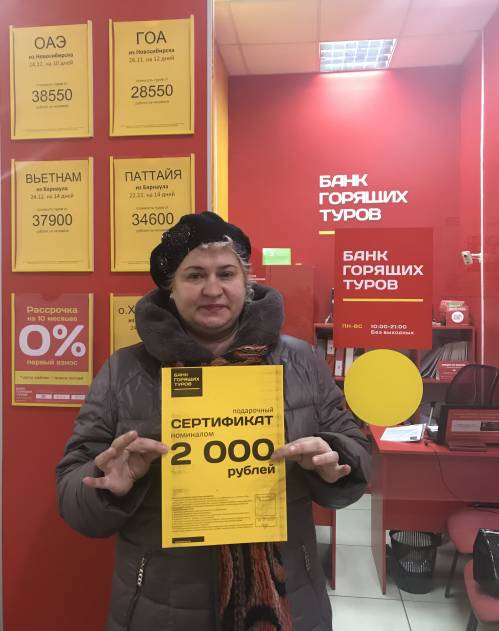 Первый раз приобрела тур в Банке горящих туров. Заинтересовалась и обратилась в офис в городе Бийске. Жду хорошего отдыха, нового выгодного предложения, море позитива!...