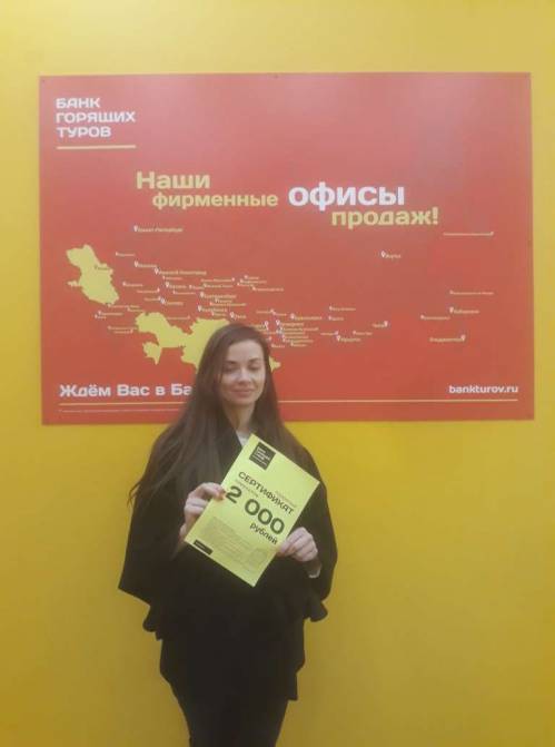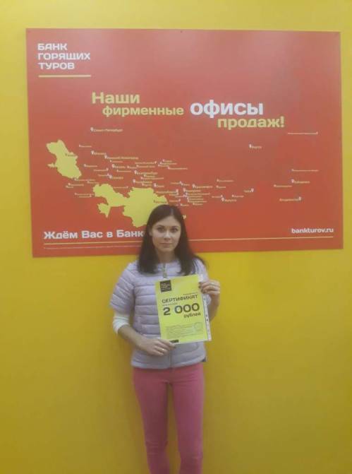 Первый раз обратилась в Банк горящих туров, привлекла цена. Понравился сервис, удобный сайт. Жду дальнейшего взаимовыгодного сотрудничества....