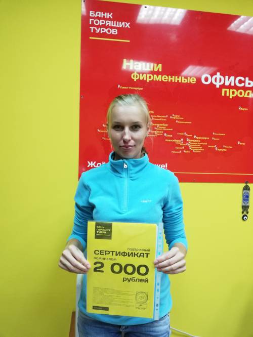 Пятый раз обратилась в Банк горящих туров. Привлекает надежность и доброжелательность. Хороший сервис в офисе продаж. Удобно пользоваться сайтом. В будущем ожидаю увеличения количе...