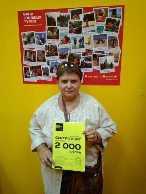 Впервые обращалась в Банк горящих туров, здесь самые низкие цены. Понравился сервис в фирменном офисе продаж, удобно пользоваться официальным сайтом. Ожидаю дальнейшего сотру...