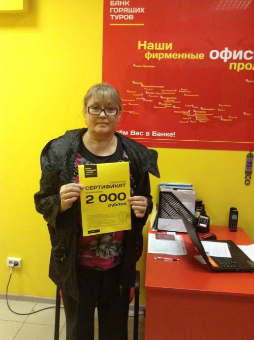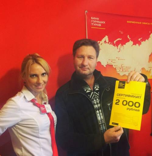 По рекомендации родственника впервые обратились в "Банк Горящих Туров" и остались очень довольны! В будущем ждем таких же акций и увеличения суммы сертификата!...